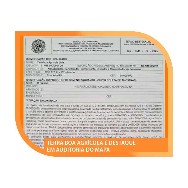 Terra Boa Agrícola é destaque em auditoria do MAPA