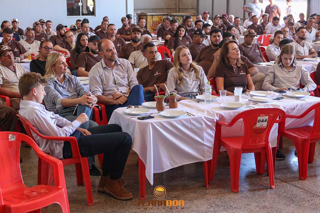 A programação iniciou com um momento cultural e de boas-vindas, seguido pela abertura oficial e exibição de vídeos institucionais que resgataram a trajetória do ano e reforçaram os valores da empresa. O gestor e fundador da Terra Boa Agrícola, Tiago Librelotto Rubert, conduziu uma mensagem inspiradora, destacando a importância das pessoas que fazem a diferença no dia a dia da organização e o papel de cada colaborador na construção da história da empresa.